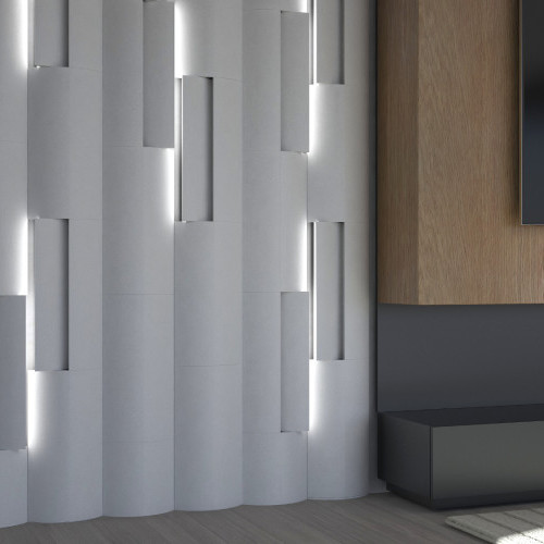 Panele ścienne 3D A.R.C. to doskonałe rozwiązanie dla osób pragnących wprowadzić nowoczesny i elegancki akcent do swojego wnętrza. Panel w kształcie prostokąta który można obracać o 180 stopni podczas montażu. Wykonane z naturalnego gipsu ceramicznego CRYSTAL-X, wzmocnione rozproszonym włóknem szklanym. Panele dostępne są w czterech kolorach: white flash, gray rock, moon stone oraz lava. Gładka lub strukturalna powierzchnia każdego panelu pozwala na łatwe dopasowanie ich do różnych aranżacji.